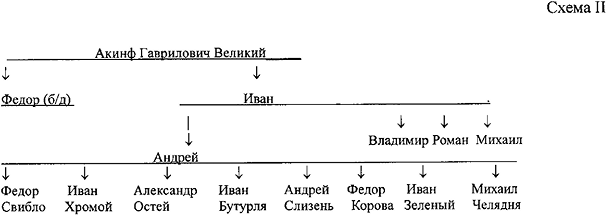 У Федора Кошки было пятеро сыновей – Иван, Федор Голтяй, Александр Беззубец и Михаил Дурной. (См. Приложение. Схема 2.)