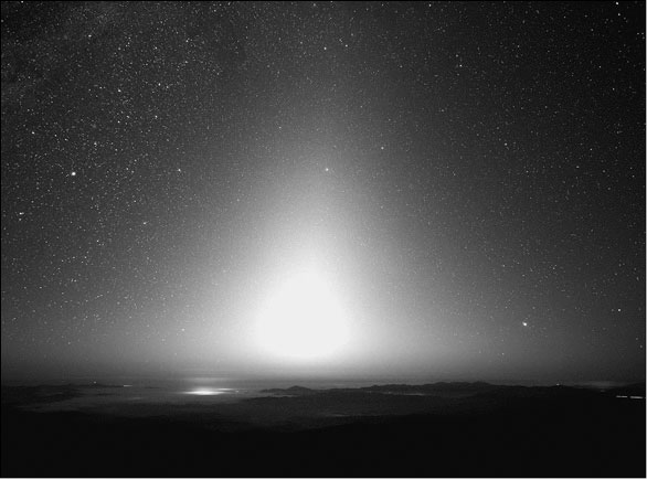 Одной из основ космологической теории Гёрбигера является утверждение, что межпланетное пространство не абсолютно пусто, но заполнено разреженными газами, преимущественно водородом, а также микроскопической пылью, в основном – кристалликами льда размером с молекулу. Эту-то межпланетную среду и освещает Солнце во время затмений. По сути, это своего рода тончайшее продолжение солнечной короны и составляет ту часть вещества, которая порождает так называемый зодиакальный свет{30} и другие подобные явления.