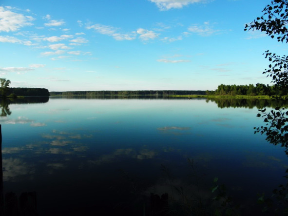 Вид на Заводоуспенский пруд в час полного штиля. Вдалеке виден Заборский лес.