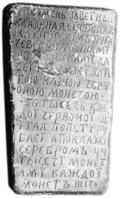 «Заветный» камень с кладовой росписью пугачевских атаманов от 4 мая 1774 г.