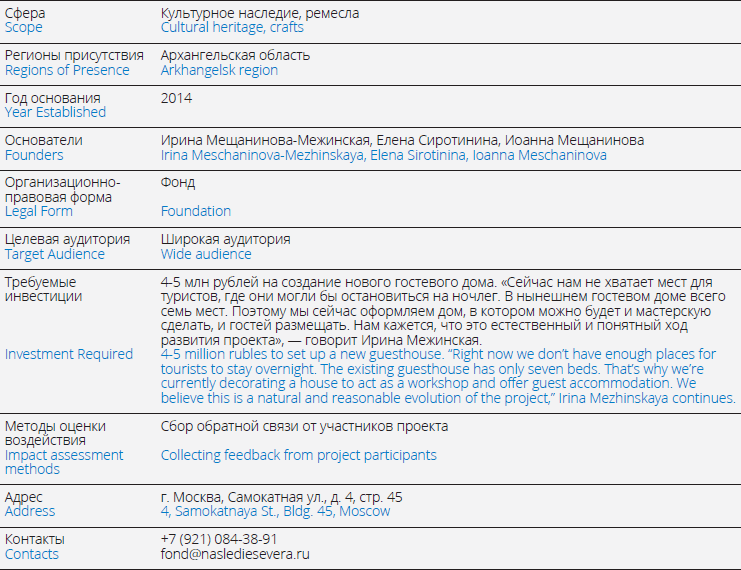 Фонд «Наследие Севера» возрождает и актуализирует традиционные ремесла на сельских территориях, развивает туристический потенциал территорий, разрабатывает маршруты и поддерживает местных производителей.
