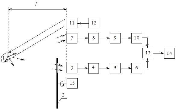 In this case, the expression for the reflected modulated flux from the surface of the controlled object and reaching the sensitive area of the second radiation receiver 7 has the form: