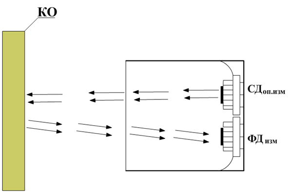 In addition, in the case of a partial coincidence of the radiation spectrum of the controlled object with the spectral sensitivity of the second radiation receiver 7, an unmodulated radiation flux from the controlled object at a wavelength of λ2m affects the sensitive area of the latter.