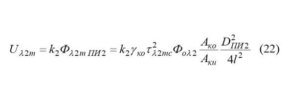where k2=cFP2kU2kAD2kINT2 is the total transmission coefficient of the blocks connected in series of the second radiation receiver 7, the second amplifier 8, the second amplitude detector 9 and the second integrator 10; kAD2 is the transmission coefficient of the second amplitude detector; kINT2 is the transmission coefficient of the second integrator.