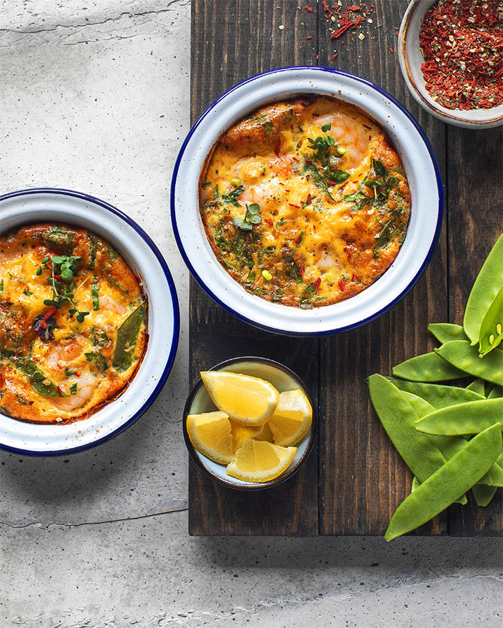 Фриттата с креветками и сладким горошком