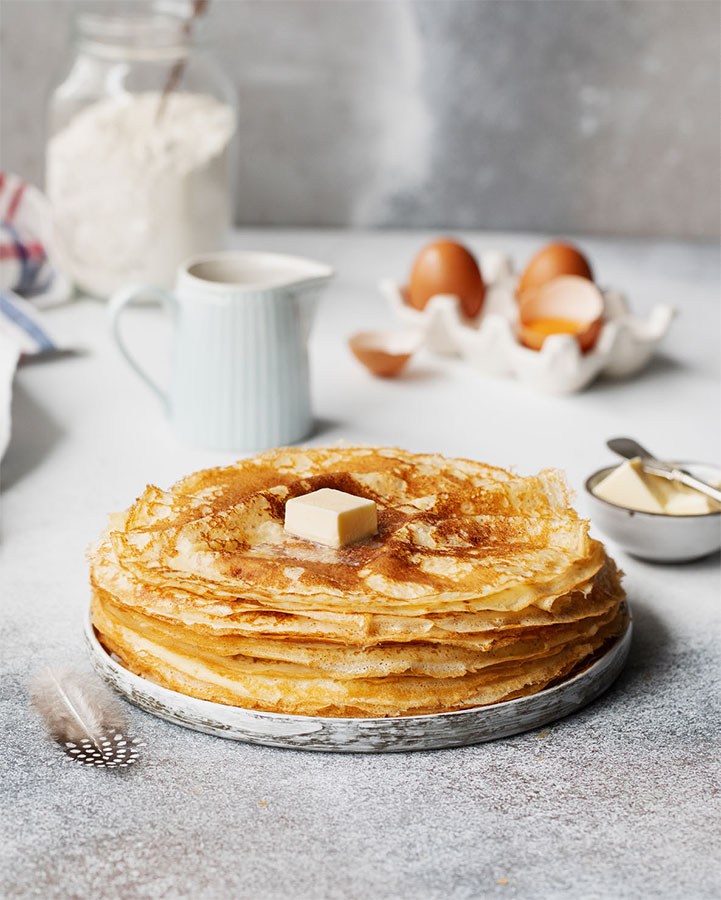 Также блинчики можно полить соленой карамелью.