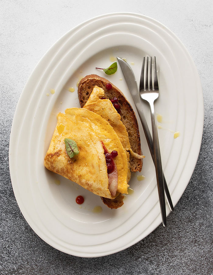 Этот омлет требует огромной сноровки в приготовлении. Поэтому, если у вас не получится приготовить его с первого подхода, не расстраивайтесь. Просто выдохните и в следующий раз попробуйте приготовить омлет еще раз.