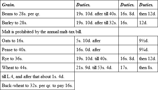 Before the 13th of the present king, the following were the duties payable upon the importation of the different sorts of grain:
