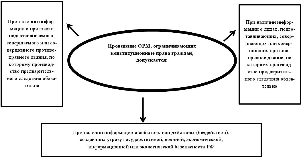ОРМ проводятся при осуществлении оперативно-розыскной деятельности согласно ч. 1 ст. 6 Закона об ОРД и при наличии оснований предусмотренных ст. 7 ФЗ Закона об ОРД. Оперативные подразделения могут проводить ОРМ в целях решения задач ОРД.