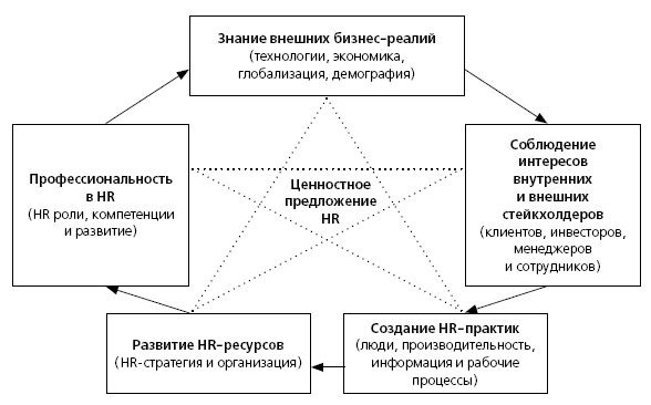 Например, если речь идет о сотруднике, который опасается увольнения, менеджер по управлению человеческими ресурсами должен показать ему, как повышение производительности труда поможет тому удержаться на работе. Менеджеру, озабоченному достижением поставленных перед ним целей, HR-специалист должен показать, каким образом инвестиции в работу службы управления персоналом помогут выполнить бизнес-задачи. Во взаимоотношениях с клиентами HR-специалист должен помнить о необходимости создания дополнительной ценности продукта или услуги, предлагаемых ему компанией. Для акционеров, которых волнуют дивиденды и темпы роста производства, ценность HR-служб заключается в такой организации работы компании, которая позволила бы получать результат уже сегодня, а также достигать и нематериальных результатов, дабы они были уверены в завтрашнем дне.