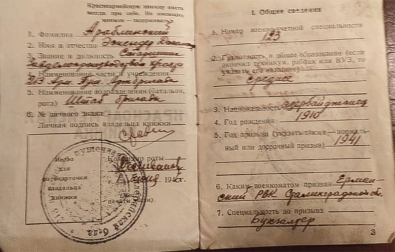 В семейном архиве Джангира Эскендеровича хранится «Личный листок по учету кадров», написанный собственноручно его отцом, Эскендером Джангировичем, 4 мая 1965 г., где в графе «национальность» записано «азербайджанец». «Азербайджанец» записано и в сохранившейся «Книжке красноармейца» гвардии старшины Араблинского Эскендера Джангировича, выданного 1 июня 1946 г. В интернете, на портале «Память народа»[30], можно найти два «Наградных листа» о представлении к ордену Красной Звезды и медали «За боевые заслуги» гв. ст. сержанта Араблинского Эскендера Джангировича, 1910 г. рожд., азербайджанца, беспартийного, призванного Ермакским РВК г. Сталинграда[31].