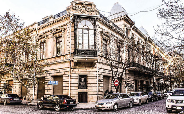 Дом Тагиева на Корчаковской улице (ныне ул. Хаджи Зейналабдина Тагиева). В нише установлен бюст З.Тагиева