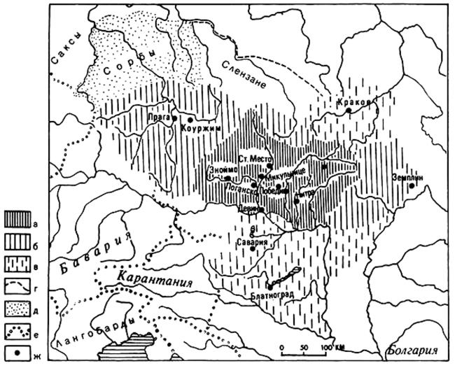 ж – важнейшие населенные пункты Великой Моравии.