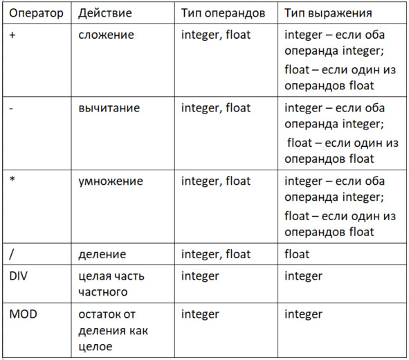 Тип выражения определяется типом операндов, входящих в выражение, и действием, выполняемым над операндами.