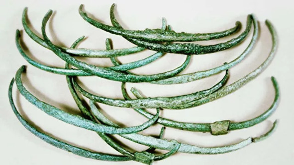 Am Ende der Bronzezeit erscheinen Goldartefakte in den Horten, und auch das Verbreitungsgebiet der Standardbronzeobjekte erstreckt sich nach Norden nach Skandinavien. Zuvor waren sie dort nur in Einzelexemplaren, in Begräbnissen zusammen mit ihren vermeintlichen Besitzern präsent. " https://ria.ru/20210120/dengi-1593891081.html