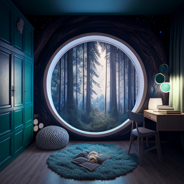 И вдруг в полутьме и тишине что-то резко ярко вспыхнуло! Мальчик подскочил от неожиданности и увидел яркое световое кольцо прямо посередине комнаты. Оно полыхало яркими вспышками, разбрызгивая снопы искр во все стороны. Казалось, они могут устроить пожар – такими огненными и пылающими они казались. Но они просто исчезали в воздухе, так и не долетая до пола и мебели. А в середине кольца, как на картине, можно было рассмотреть диковинный лес.