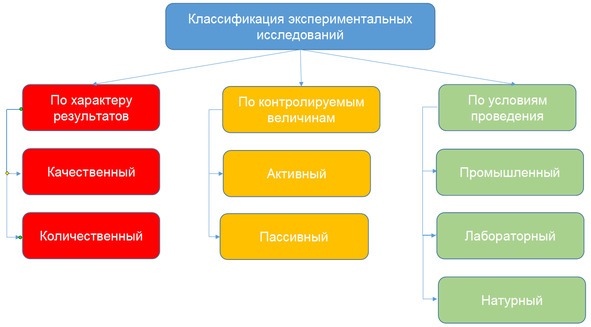 По условиям проведения различают промышленный, лабораторный, натурный, полевой эксперименты и т. д.