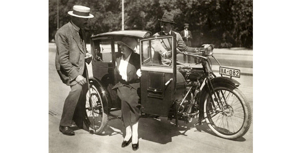 Первое немецкое моторизованное такси, фактически мотоцикл с коляской. После Первой мировой войны уровень благосостояния в Германии, несмотря на значительные репарационные выплаты, восстановился довольно быстро. В начале 1920-х гг. казалось, что страна встала на путь устойчивого роста благосостояния населения, явственным признаком которого явилось появление во многих городах Германии служб заказа такси. Однако в 1923 г. Веймарская республика оказалась ввергнута в жестокий кризис…