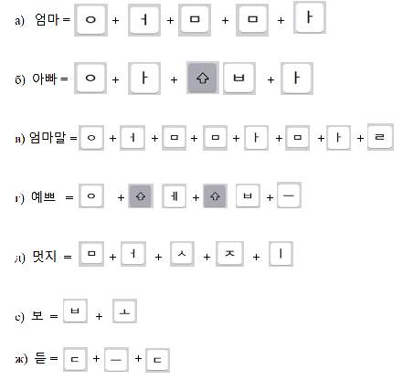 № 7. Попробуйте напечатать следующие корни корейских слов: