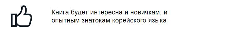 Главная цель учебника – научить вас корейскому языку, дать ясность и ориентиры развития. На примере лаконичных и интересных фраз развить понимание корейской логики. Заложить базу, которая даст вам уверенность в решении любых задач, связанных с корейским языком.