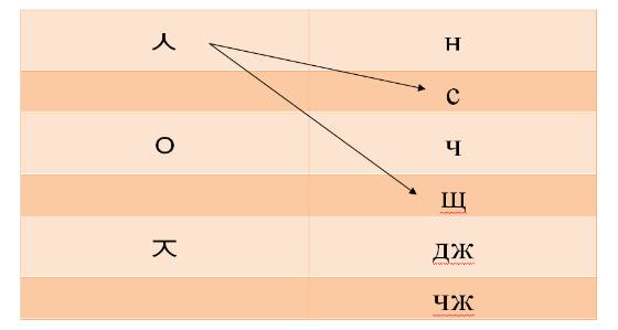 1) Звучание корейской буквы ㅊ похоже на звучание: