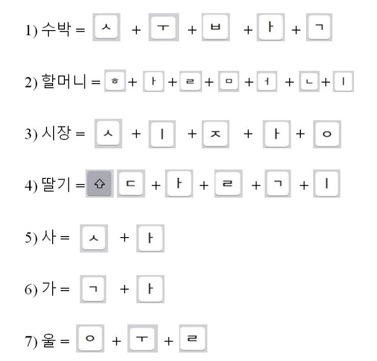 № 4. Найдите на клавиатуре клавиши с буквами ㅅ, ㅇ, ㅈ.