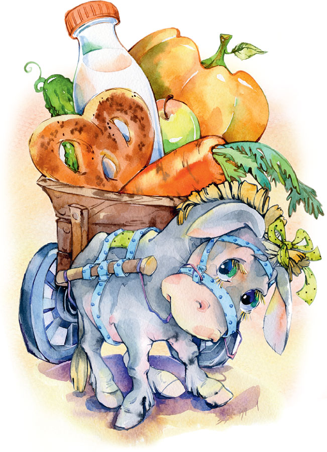 Катиному детскому саду подарили ослика. Маленького, да сильного, трудолюбивого и послушного. Ослик не только катал ребят, но и привозил молоко, хлеб, овощи, дрова. Ослик не отказывался ни от какой работы.