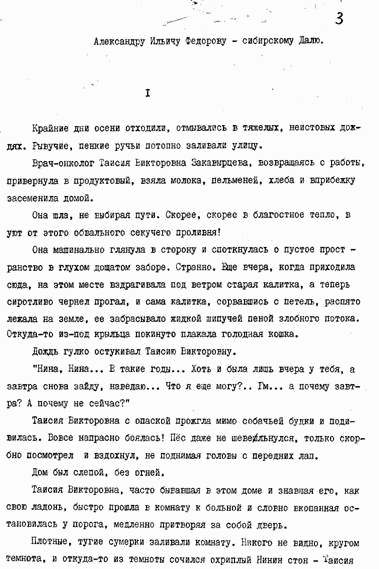 – О, оно самое… Какое закомуристое… А нет вправде напрямуху чесануть: лихо край доспелося, не хватает наших мочей вас выздоровить, вот и ссылаем домой домирать… Сгори здеся, в диспансере, нам какой минусяка! Статистику только подгадите. А откинь лыжки дома… Это ж дома! Мы в стороне, а не в бороне. На нас не повесят!.. Кривая ариф… кривая бухгалтерия… У моих соседев сынка учится на врача. Ласковый, заботный, зря ватлать языком не станет. Я спросила почитать про это моё домашнее лечение. Он и притарань книжищу толще библии. Там я вычитала, на память положила… Для надёжности себе списала…