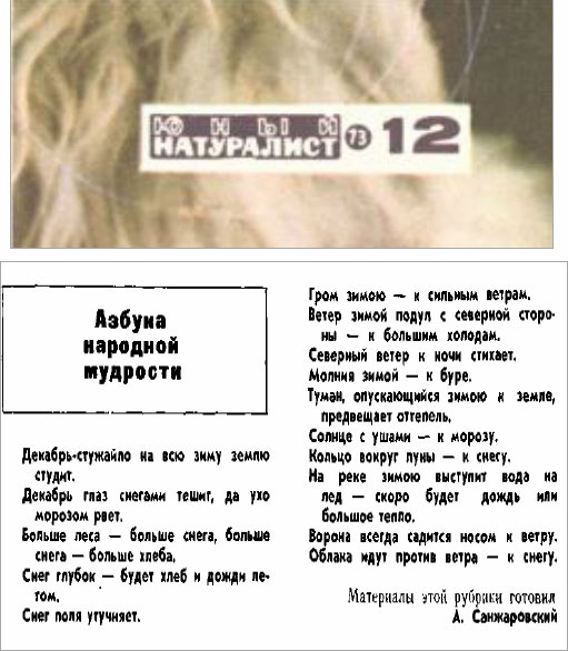 Зимою под печкой сверчок очень кричит – к теплу, к снегу, летом – к дождю.