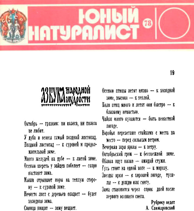 (Ежегодник «Лес и человек» за 1974 год. Только в этом выпуске было опубликовано 13 моих подборок.)