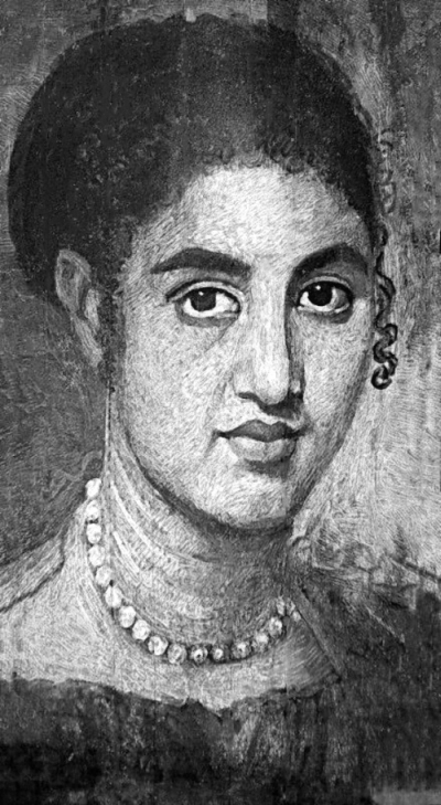 Увы, знаменитое выражение «Diamonds are forever»[2] никак не может быть применено к жемчугу. Будучи драгоценностью органического происхождения, жемчуг, к сожалению, со временем стареет (вещество конхиолин в нем высыхает), теряет свою привлекательность, по-видимому, в дальнейшей перспективе даже разлагается. Поэтому жемчуг не сохранился в захоронениях, и лишь немногие музеи мира могут похвастаться относительно старыми украшениями с ним. О том, насколько популярен был жемчуг в античном мире, мы можем судить лишь по письменным источникам, да скудным сохранившимся живописным свидетельствам. Например, после завоевания Египта римским императором Августом, возник обычай вкладывать в бинты мумии портрет покойника, написанный техникой восковой живописи на доске.