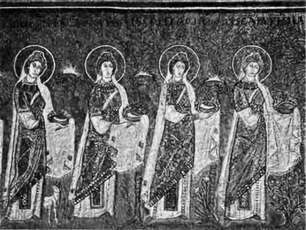 Фрагмент мозаики «Шествие 22 девственниц». Церковь Сант-Аполлинаре Нуово в Равенне