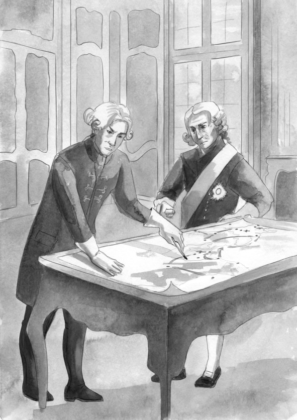 29 октябряВот Анатольич честь по честиДоклад добротный изложил…Шувалов выслушал все вестиИ в колокольчик позвонил.Вошёл слуга, неся конверты,Свечу и короб с сургучом.– Иван, поедешь тайно в Гент ты.Подробности прочтёшь потом.…Возница свистнул, кнут взметнулся ―Рванулся в путь гнедых квартет;А Анатольич улыбнулсяИ спешно первый вскрыл конверт.И голова его хранилаВсё, что Отчизна поручила!..***Чеканит караул английскийУ Кенсингтонского дворцаТяжёлый шаг по хляби склизкой,Сменяясь через два часа.Георг Второй в ленивой позеВ подушках мягких утонул.Пелэм, как никогда серьёзен,К нему уверенно шагнул:– О государь, как ожидали,В России началась возня —Шпионы прусские прознали,Где Брауншвейгская родня…А кроме них нам конкурентыЕщё французские агенты…***Похолодало в Турку к ночи,И поднялась в порту метель.Посол российский озабочен ―От канцлера он ждёт вестей.И в ожидании ГолицынВёл наблюдения свои,Чтоб матушке-императрицеПолезным быть и в эти дни…И здесь не подвела фортуна ―Так, князь заметил невзначай:Причалила бесшумно шхуна,И трое вышли на причал.И, чтоб развеять все сомненья,Посол усилил наблюденье…30 октябряИ утром распознал повадкиТерсье бесславных молодцов: 11«Шпионы эти очень хватки ―Уйдут, не сыщешь и концов…»И приобщить решил он к слежкеГонца, что сам Бестужев шлёт:«Надежда есть у каждой пешки,Что до фигуры дорастёт!Вот только б поскорей он прибыл,Чтоб мне покинуть сей острог;Да лишь бы за собой на дыбуМеня Бестужев не увлёк…»Напрасно ж князя угнеталиРаздумья эти об опале…***Всё меньше согревает солнцеКрасоты Царского Села.Императрица зрит в оконце ―Совсем безрадостна она…Чевакинский с Растрелли вместеСвоё строительство вершат.За десять лет им стал известенЗдесь каждый камень и солдат…– Ну, Алексашка, что мне скажешь?Шувалов подошёл к окну:– Меня ты, матушка, обяжешь,Коль просьбу выполнишь одну…Случилась долгая беседаУ них ― до самого обеда…Три лошади под седокамиНетерпеливо землю бьют,Побрякивая удилами;А к ним четвёртую ведут.В седло взлетает Павел смело,И вот уж крепость позади…Шувалов начинает дело,В котором и друзья ― враги.Все думы Павла лишь о роли,Что предстоит ему сыграть:Не может он, пусть против воли,Пред пруссаками сплоховать.Не знал он: трое, с кем он скачет,Об этом думают иначе…***Устало свет и тьма обнялисьНад жёлтым замком Сан-Суси;А звуки флейты повстречалисьС колёсным хлюпаньем в грязи.Вольтер (всем нам небезызвестный)Спешил на встречу к королю,Чтоб договор, по сути пресный,Скрепить навечно ― и адью.Но Фридрих, заключив в объятья,В делах предстал как самодур,Критично разделив понятьяНа Францию и Помпадур.И затянулись уговоры,Умолкнув лишь на грани ссоры…∞Да, над Европой зреет буря ―Её уже не избежать.И очень скоро будет пуляСильнее слова убеждать.И тут возможны все приёмыИ каждый козырь на счету,А игроки давно знакомы,Чтоб говорить начистоту.Ну а пока не грянут пушки,Дипломатический «кинжал»Все достают из-под подушки,От нетерпения дрожа.Политики и интриганыИсподтишка наносят раны.