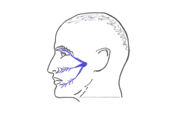 На лице проходят парные нервы, исходящие из мозга. Если возникает заболевание нерва (невралгия), боль распространяется по ходу нерва, обычно на пораженной стороне лица. Чаще других встречается невралгия тройничного нерва, получившего названия из-за трех его ветвей, 1-ой верхней, глазной ветви, 2-ой средней, верхнечелюстной, и 3-ей нижней, нижнечелюстной ветви. Обычно поражаются 2-я и 3-я ветви, 1-я реже вовлекается в патологический процесс.