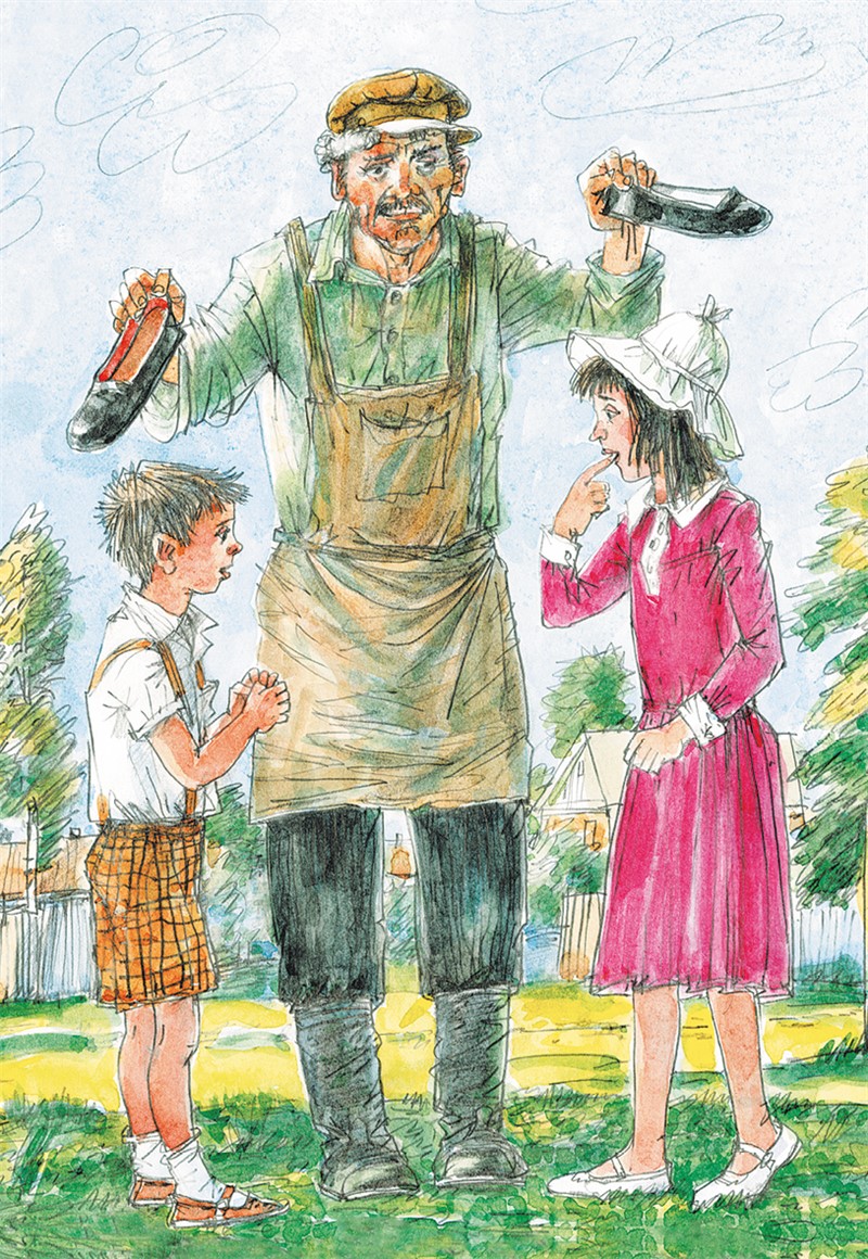 – Не волнуйтесь, тётя Оля и дядя Коля, я знаю, как нам надо поступить, чтобы вы не остались без галош. Я возьму все Лёлины и Минькины игрушки, продам их тряпичнику, и на вырученные деньги мы приобретём вам новые галоши.