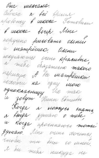 Все eё письма я пачкой носил с собой и почасту перечитывал все подряд по нескольку раз на день. И было такое чувство, что я только что получил одно такое длинное, бесконечное письмо.