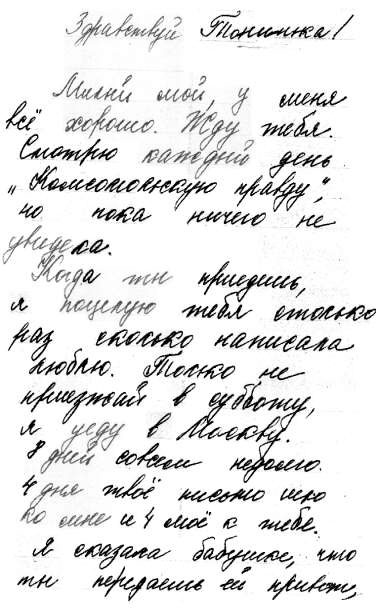 И хотелось, чтоб все её письма состояли из одного Великого Слова, прилежно написанного в бесконечные столбики.
