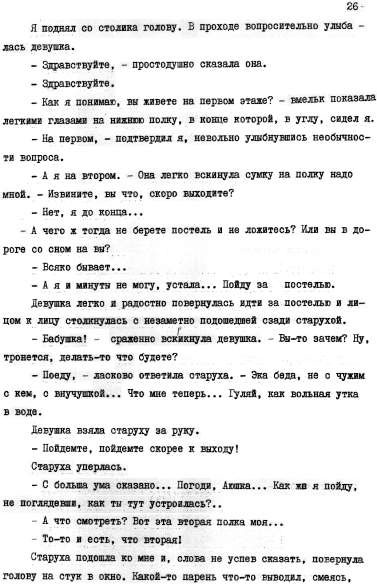 – Старушку вспомнил… Уже из Москвы, от журнала, приезжал именно к ней… А насчёт девушки – толстый прочерк.