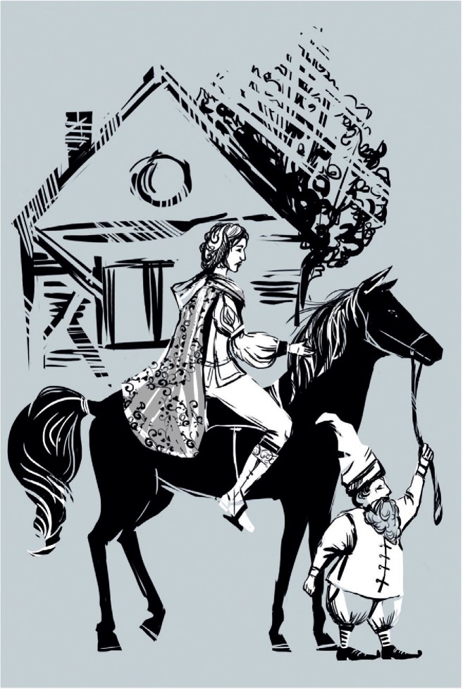 Однако конь его, который всегда заранее чувствует опасность, не волнуется, лишь потихоньку перебирает ногами, успокаиваясь после долгой скачки. Тычется головой в руки, просит ласки… Принц потрепал дорогого друга по влажной шее и дал возможность отдохнуть, свободно попастись на лужайке. А сам повернулся, намереваясь подойти к сторожке.