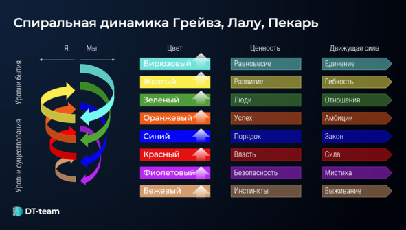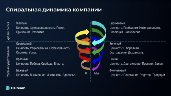 Спиральная динамика помогает нам понять ситуацию с точки зрения людей, так как многие компании смотрят либо только на финансовые показатели, либо проводят только аудит компании, либо проводят аудит рынка. Но они не смотрят на «материал», из которого состоит компания. Надо смотреть на людей, которые работают внутри компании. Я считаю, что если мы говорим про системный, комплексный подход для компаний, то мы должны использовать максимальное количество инструментов, которые нам позволят понимать всю ситуацию компании. А компания, прежде всего, это люди. Поэтому мы стараемся брать все самое новое, особенно то, что многим пока непонятно или недоступно.
