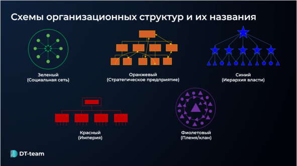 Рассмотрим подробнее описание паттернов, которые присущи каждому из видов организационных структур.