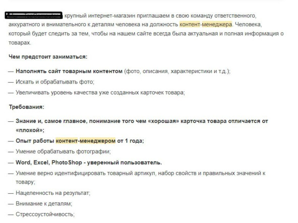 И каждый заказчик хотел своего: профессия контент-менеджера была новая, что требовать от исполнителя, не понимал никто. Каждый заказчик искал специалиста с различными навыками и опытом. Одни – суперспециалиста, который умеет и знает все, начиная от разработки интернет-магазина и заканчивая SEO-продвижением. Вторые ограничивались заполнением карточек магазина. Третьим нужен был только контент или ведение социальных сетей.