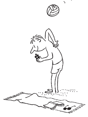 – Отойдите подальше, – велел нам папа, который уже намазался маслом, но тут – бац! – мяч попал ему по голове.
