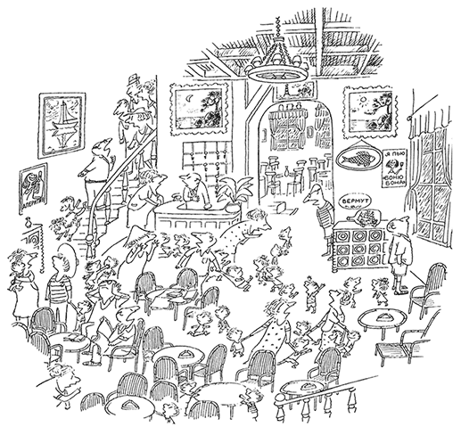 Мы все здорово шумели, и это было классно, как на перемене, когда вдруг – бац! – на пол упала пепельница. Тут прибежал хозяин гостиницы и начал кричать и ругать нас. Наши папы и мамы тоже прибежали в гостиную и стали ссориться с нами и с хозяином гостиницы. А мсье Лантерно ушёл.