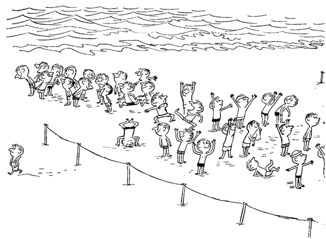 На пляже появился новый тренер по гимнастике, и все мамы и папы поспешили записать на его занятия своих детей. Преисполненные родительской мудрости, они подумали, что для всех будет лучше, если хотя бы один час в день дети будут чем-то заняты.