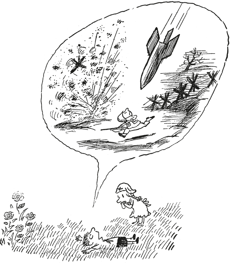 Мне больше понравилось про войну, и я лёг на траву, а Мари-Эдвиж села рядом со мной и стала говорить: