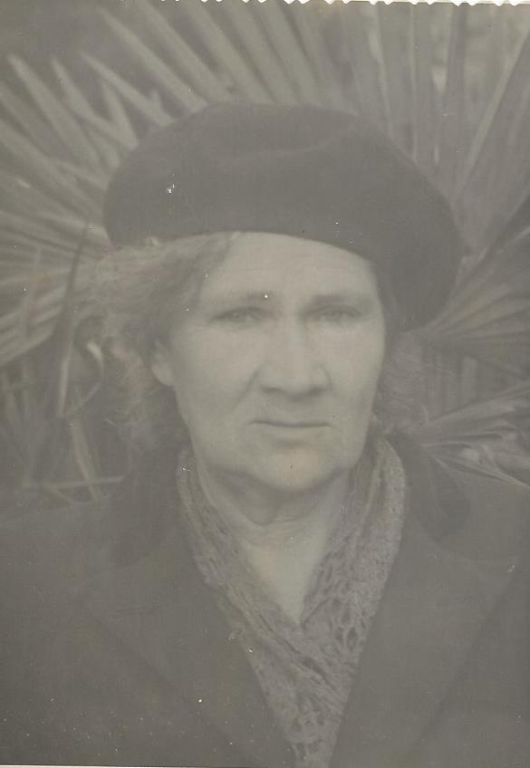Александра Дмитриевна, дата рождения 23 мая 1889 года, окончила гимназию, гордилась что у неё было три сундука приданного и швейная машинка. Была жесткой женщиной, держала семью в своих крепких руках.