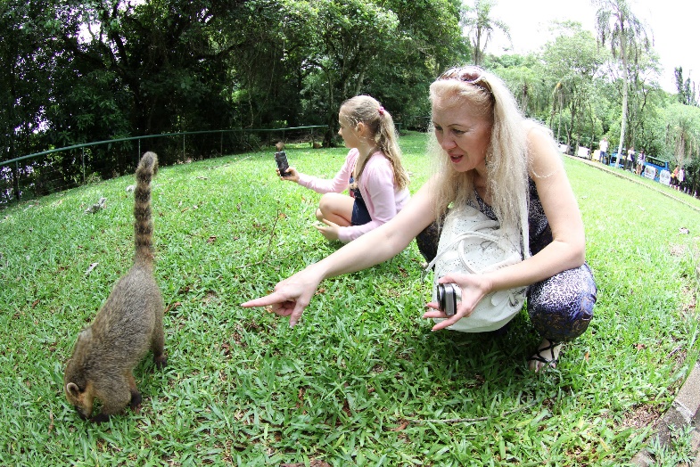 Парк очень огромный, и на его территории водятся различные экзотические птицы, растения и животные. Но самым ручным из всего этого оказался енот-носуха (я так думаю).