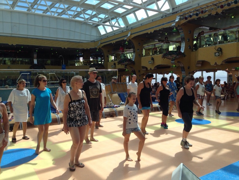После обильного завтрака “сколько влезет”, пошли на верхнюю палубу, легли в шезлонге и наблюдали как Нюша купается в бассейне.