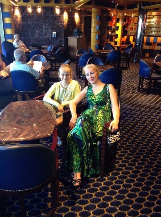 Нам определили столик рядом с оперными певцами, которые работают на лайнере. Они будут выступать в театре, мы ещё их увидим и услышим в работе.